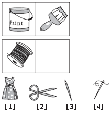| A can of paint is to a paintbrush as a spool of thread is to a sewing needle. This is a relationship of function. Both show the tool needed to perform a task. |