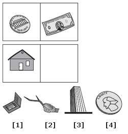| A penny is to a dollar as a small house is to a skyscraper. This relationship shows smaller to larger. A penny is much smaller than a dollar; a house is much smaller than a skyscraper. |