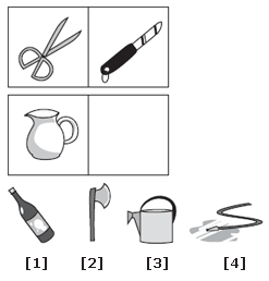 | Scissors is to knife as pitcher is to watering can. This relationship is about function. The scissors and knife are both used for cutting. The pitcher and watering can are both used for watering. |