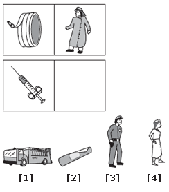 Choose the picture that would go in the empty box so that the two bottom pictures are related in the same way as the top two are related.