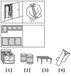 | Closet is to shirt as kitchen cabinets are to cans of food. The shirt is stored in the closet; the food is stored in the cabinets. |