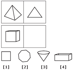 | Pyramid is to triangle as cube is to square. This relationship shows dimension. The triangle shows one dimension of the pyramid; the square is one dimension of the cube. |
