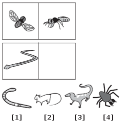 | Fly is to ant as snake is to lizard. The fly and ant are both insects; the snake and lizard are both reptiles. |