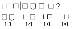 | Study the pattern carefully. In the first segment, two letters face right and the next two face left. The first letter in the second segment repeats the last letter of the previous segment. The same is true for the third segment. But the forth segment changes again; it is the opposite of the first segment, so the last two letters must face right. |