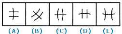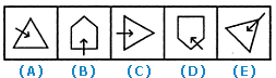 In each of the following questions there are five figures (A), (B), (C), (D) and (E). Out of these five figures four are similar in a certain way, However, one figure is not like the other four. Choose the figure which is different from the rest.
