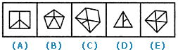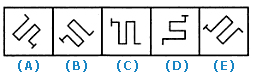 In each of the following questions there are five figures (A), (B), (C), (D) and (E). Out of these five figures four are similar in a certain way, However, one figure is not like the other four. Choose the figure which is different from the rest.