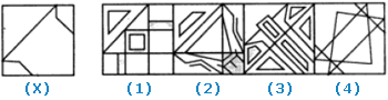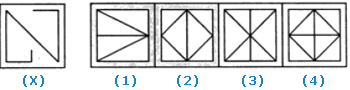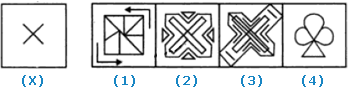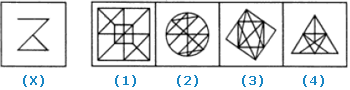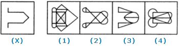 In each of the following questions, you are given a figure (X) followed by four alternative figures (1), (2), (3) and (4) such that figure (X) is embedded in one of them. Trace out the alternative figure which contains fig. (X) as its part.
