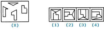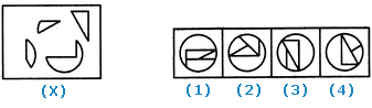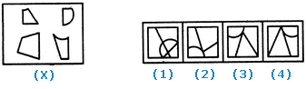 | Find out which of the figures (1), (2), (3) and (4) can be formed from the pieces given in figure (X). |
