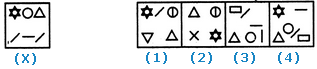 | Select the alternative in which the specified components of the key figure (X) are found. |