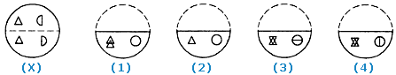 | Find out from amongst the four alternatives as to how the pattern would appear when the transparent sheet is folded at the dotted line. |