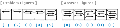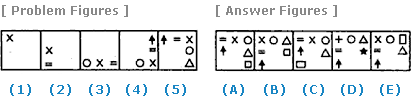 | Select a figure from amongst the Answer Figures which will continue the same series as established by the five Problem Figures. |