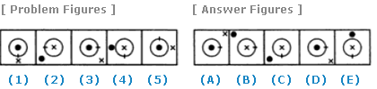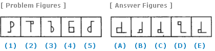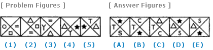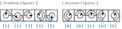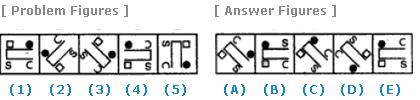 | Select a figure from amongst the Answer Figures which will continue the same series as established by the five Problem Figures. |