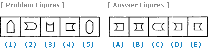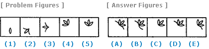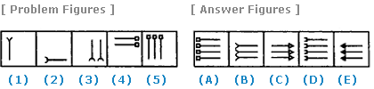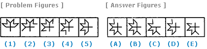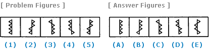 | Select a figure from amongst the Answer Figures which will continue the same series as established by the five Problem Figures. |