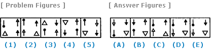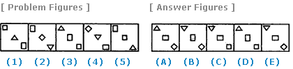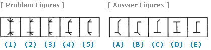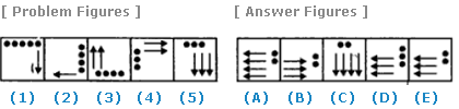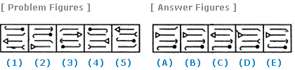 | Select a figure from amongst the Answer Figures which will continue the same series as established by the five Problem Figures. |