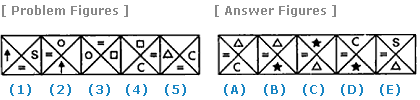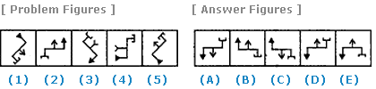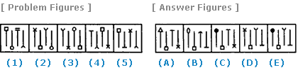 | Select a figure from amongst the Answer Figures which will continue the same series as established by the five Problem Figures. |